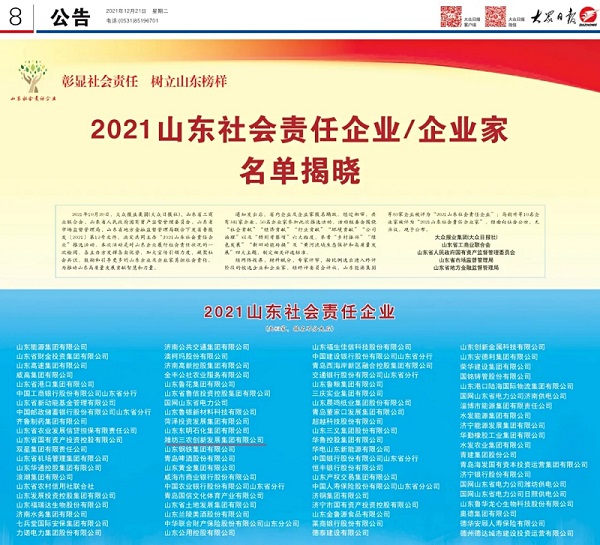 近日,由大眾報(bào)業(yè)集團(tuán)(大眾日?qǐng)?bào)社)、山東省工商業(yè)聯(lián)合會(huì)、山東省人民政府國(guó)有資產(chǎn)監(jiān)督管理委員會(huì)、山東省市場(chǎng)監(jiān)督管理局、山東省地方金融監(jiān)督管理局聯(lián)合主辦的“2021山東社會(huì)責(zé)任企業(yè)”評(píng)選活動(dòng)結(jié)果正式揭曉,經(jīng)網(wǎng)絡(luò)投票、初審?fù)镀?、?zhuān)家評(píng)議等程序,濰坊三農(nóng)創(chuàng)新發(fā)展集團(tuán)有限公司從全省參評(píng)的341家企業(yè)中脫穎而出,榮獲“2021山東社會(huì)責(zé)任企業(yè)”稱(chēng)號(hào)。