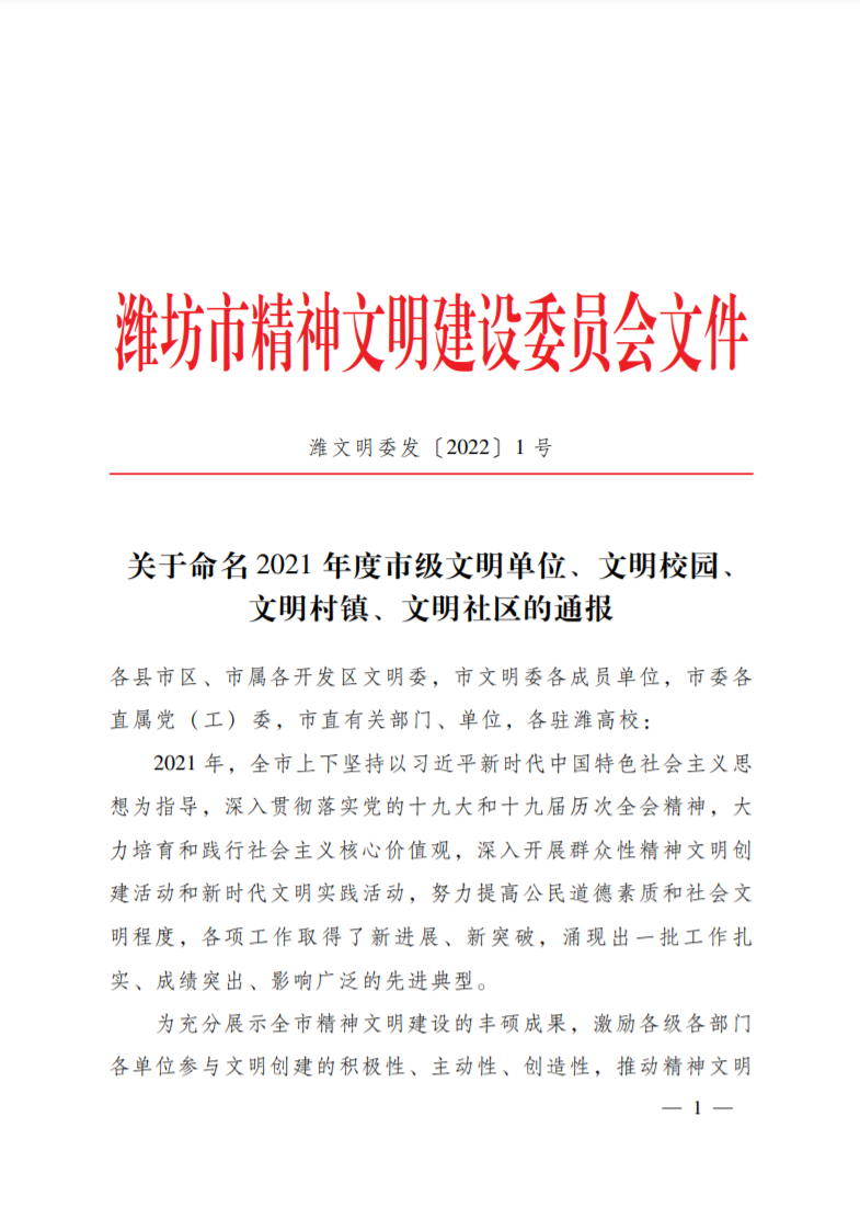 [喜訊]濰坊市國有資產(chǎn)投資控股有限公司榮獲“濰坊市市級(jí)文明單位”稱號(hào)